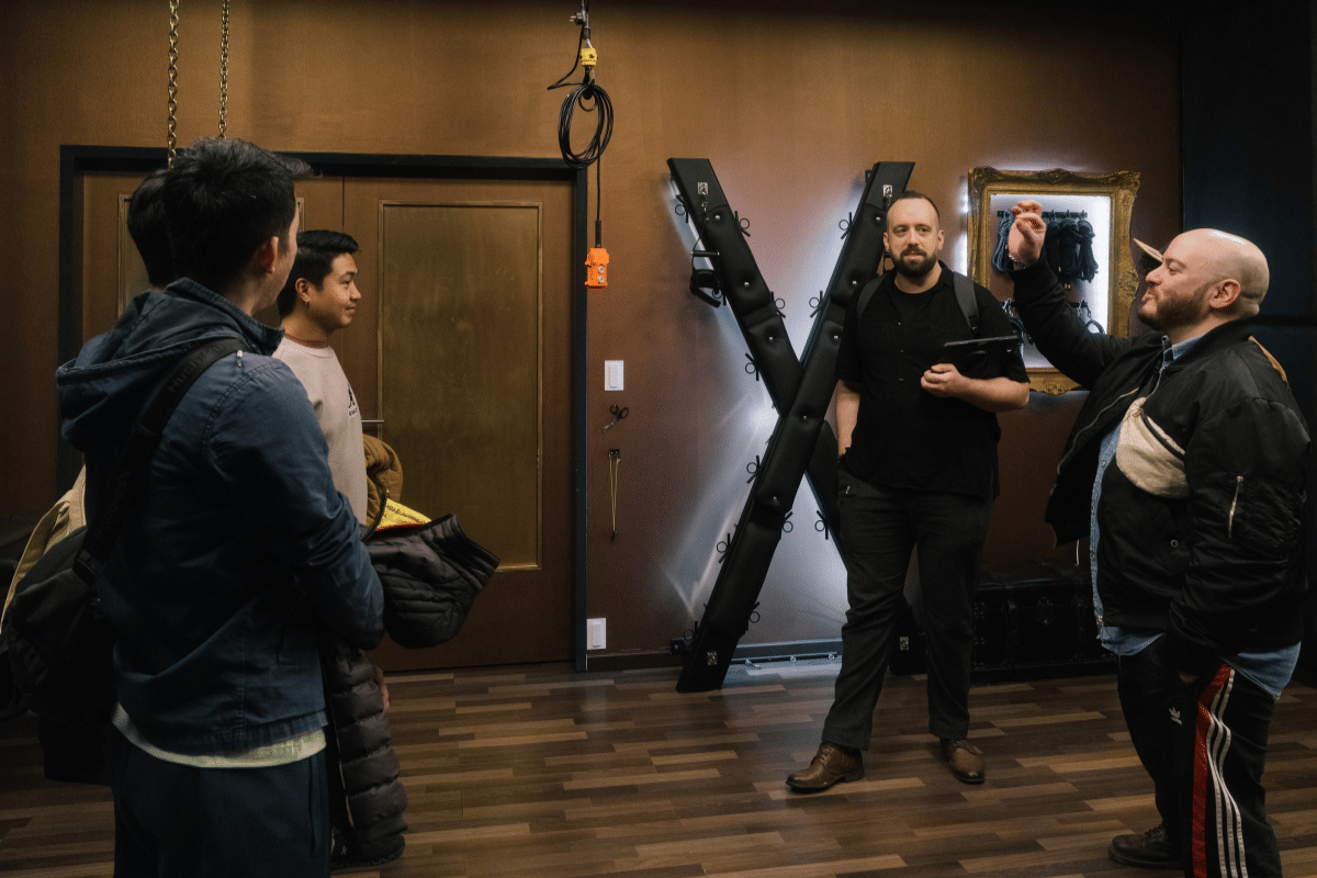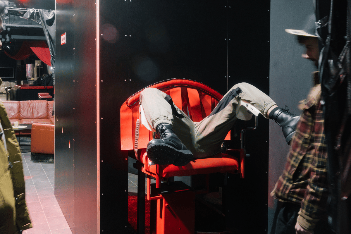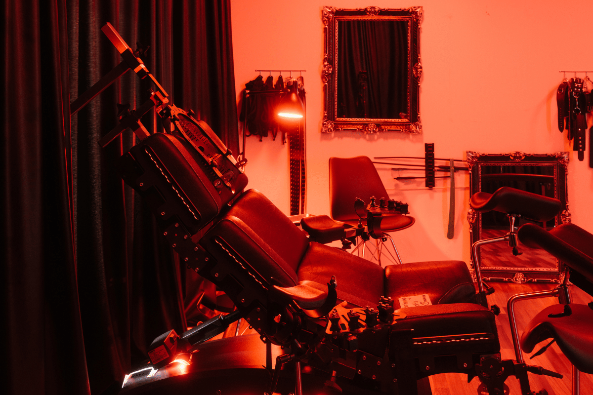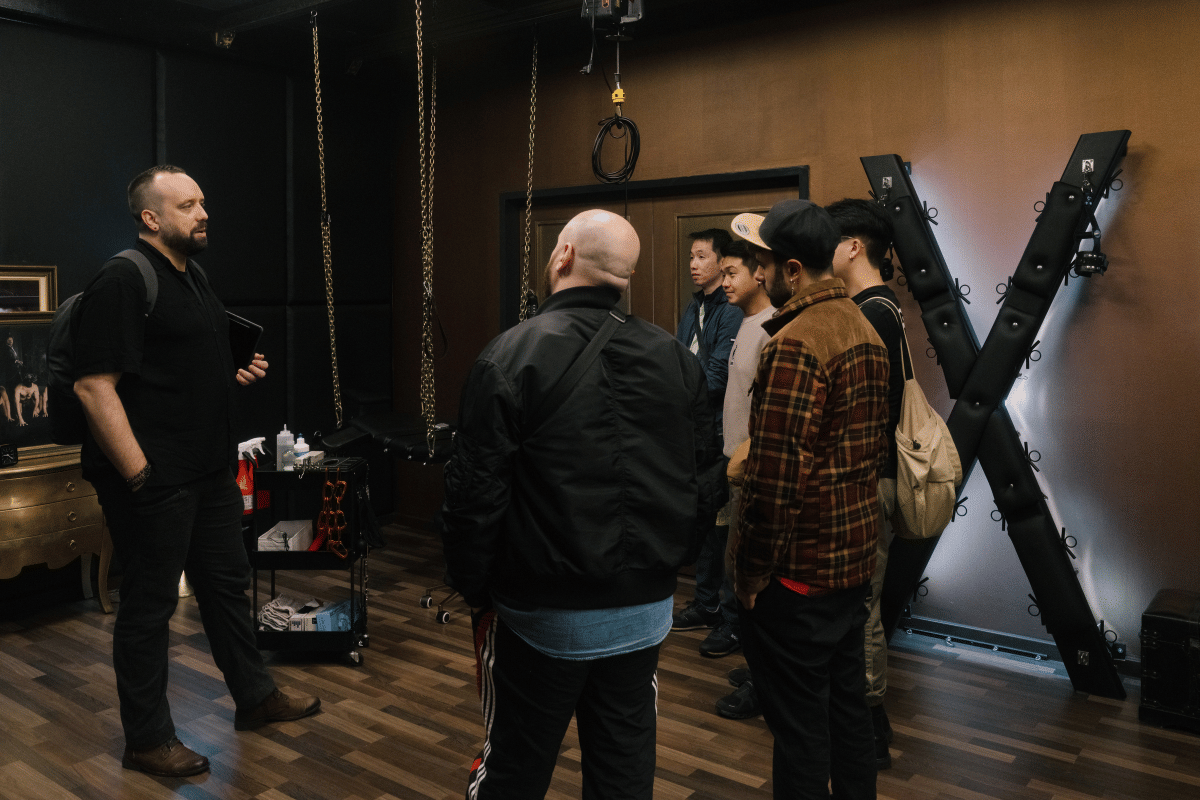 At the end of the tour, guests are invited into a private room inside Atrium, Berlin’s largest professional dominatrix studio. The door closes. The outside world disappears.